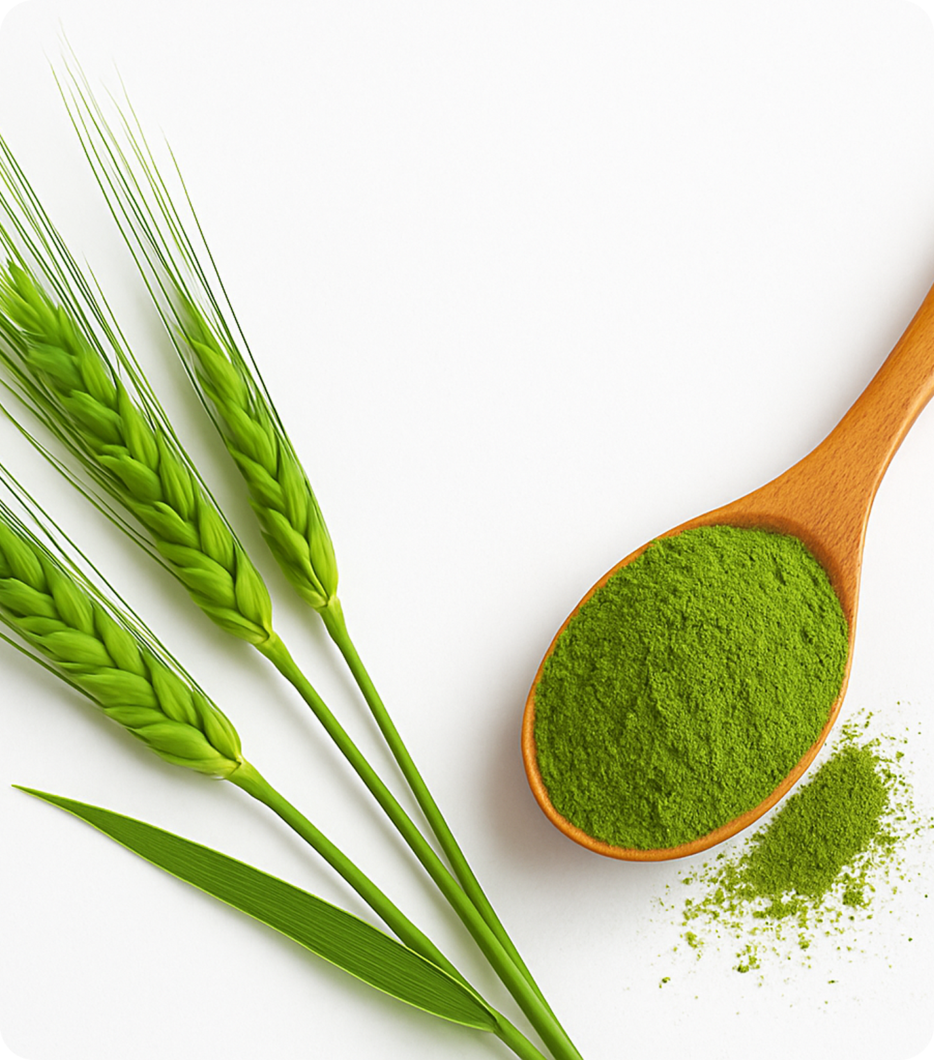 Gerstegraspoeder is een zachte, groene krachtbron — een symbool van natuurlijke energie, herstel en balans.