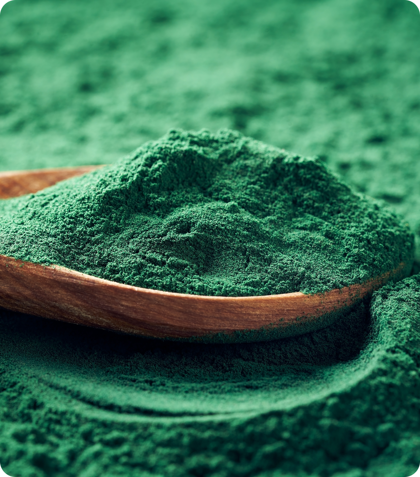Spirulina is een microscopisch blauwgroen algje dat van nature voorkomt in mineraalrijke meren en subtropische wateren. Het wordt beschouwd als een van de oudste levensvormen op aarde en staat bekend om zijn uitzonderlijk hoge voedingswaarde. Na het oogsten wordt spirulina zorgvuldig gedroogd en vermalen tot een fijn poeder met een diepe donkergroene kleur en een karakteristieke, kruidige smaak.